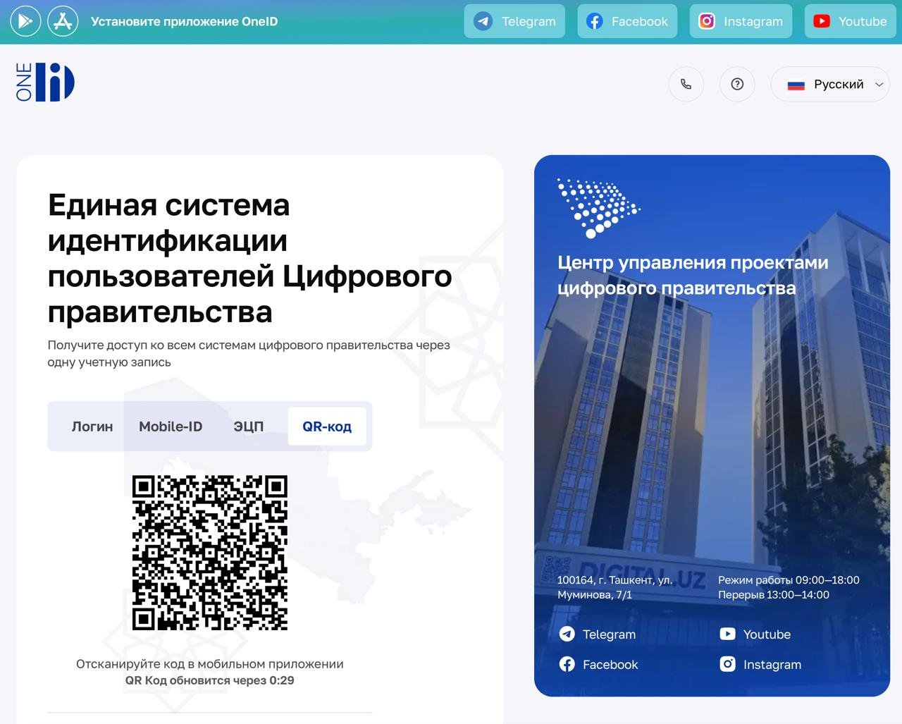 4. Открыть на компьютере сайт id.egov.uz. Выбрать вход через QR-код